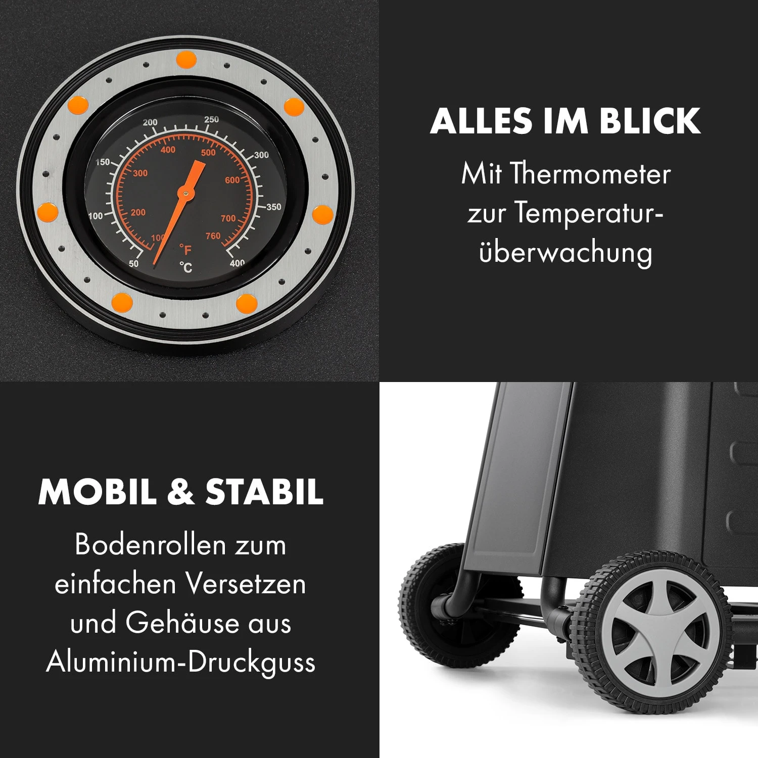 - ergonomisches Grillen dank idealer Arbeitshöhe
