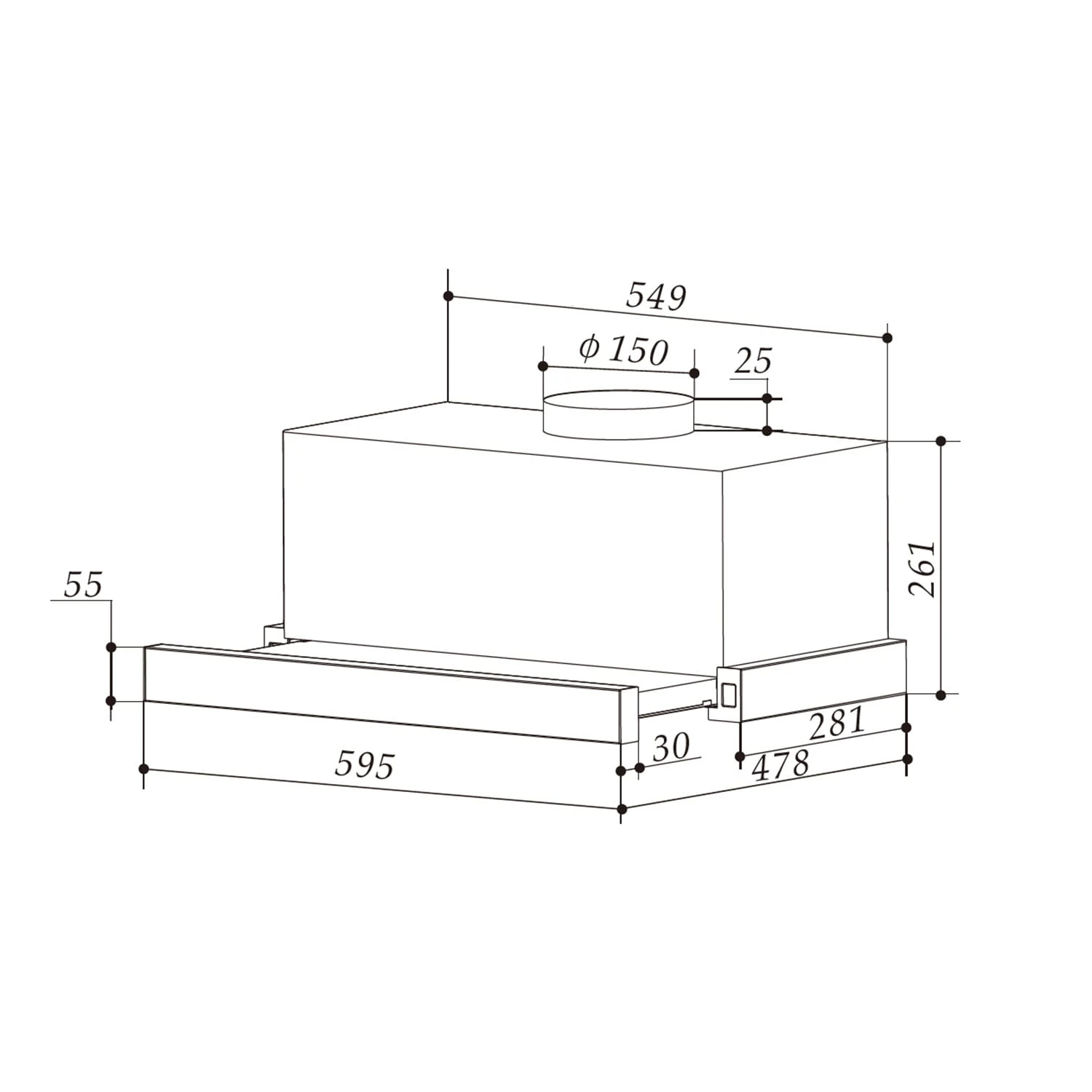 - Anbringungshöhe (über Kochfeld): 65 – 75 cm